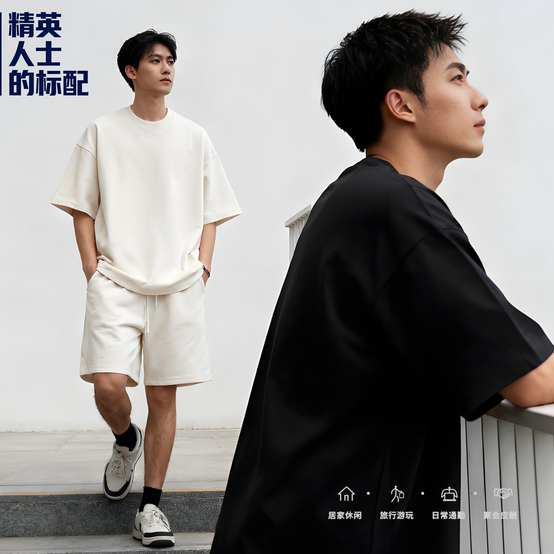 300g Pure Cotton Double Yarn T-Shirt for Men and Women, Loose Xinjiang Cotton Short-Sleeve Top, Solid Color Casual Base Shirt, Simple Style