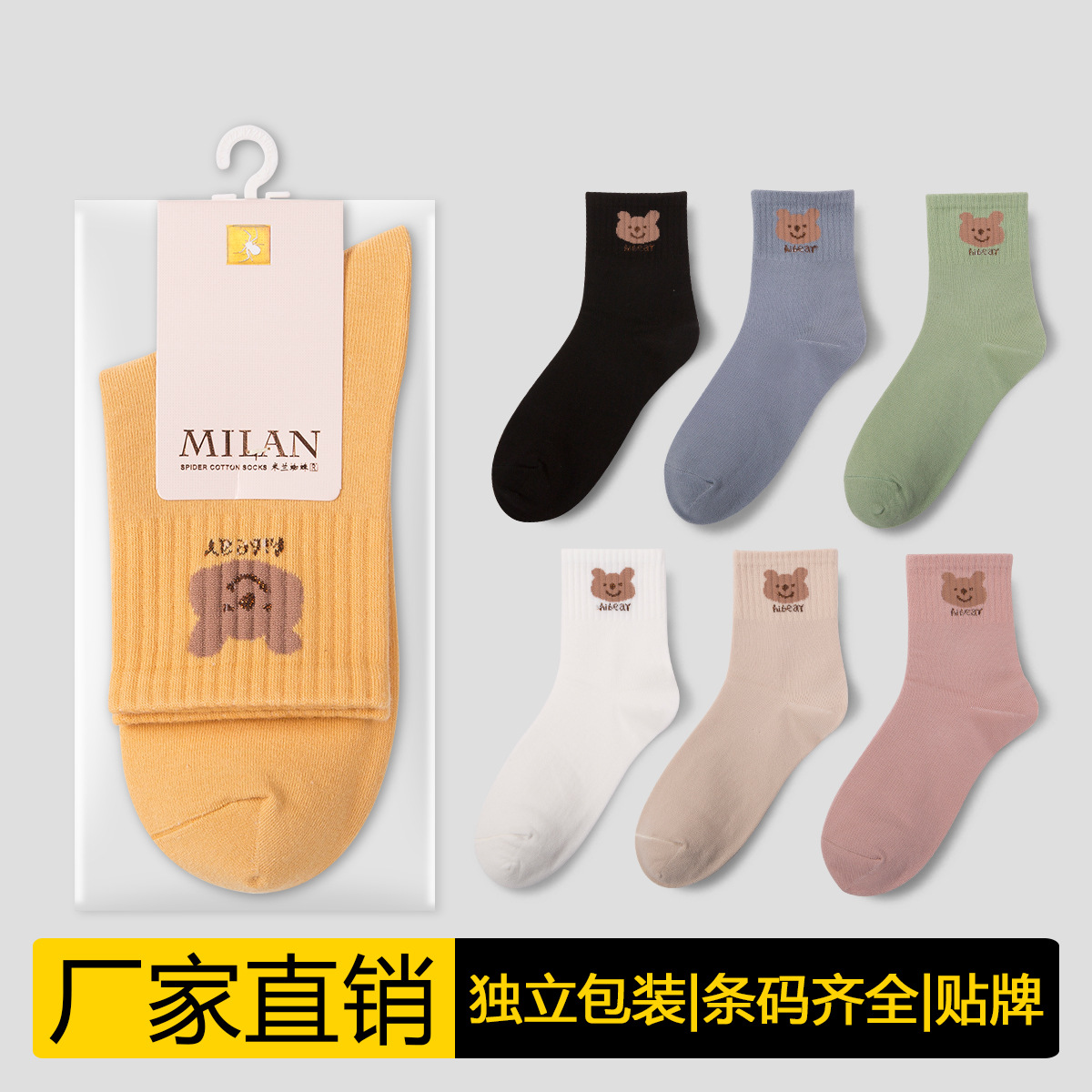 Milan Spider autumn and winter socks children in the tube ins Wind cotton socks bear female socks wholesale independent packaging cute