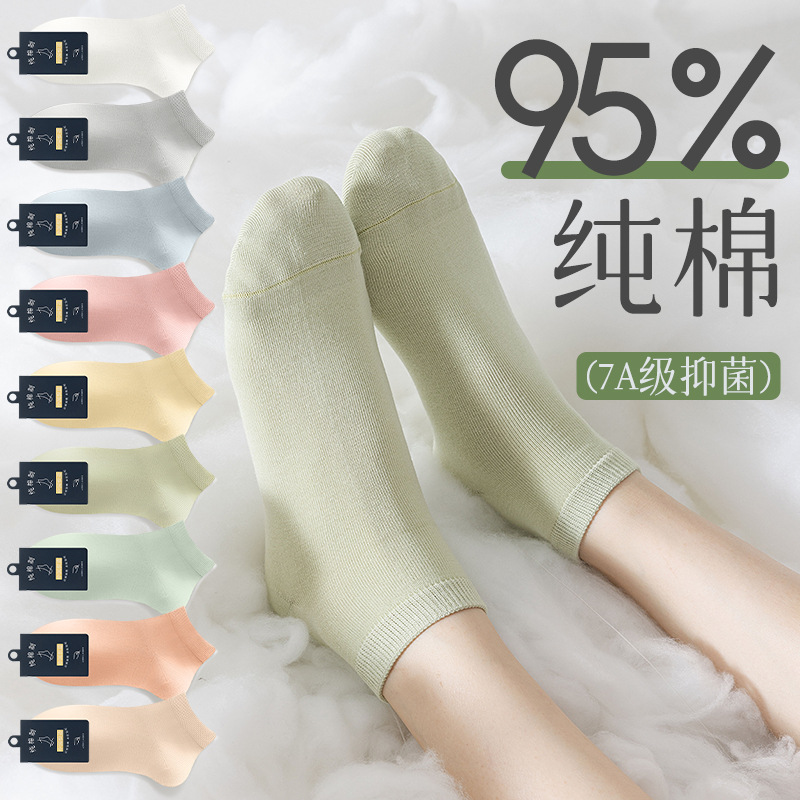 Cotton Socks Women's Spring and Summer Women's Short Socks Autumn Thin Boat Socks Pure Cotton Antibacterial Breathable Short Tube White Cotton Socks Tide