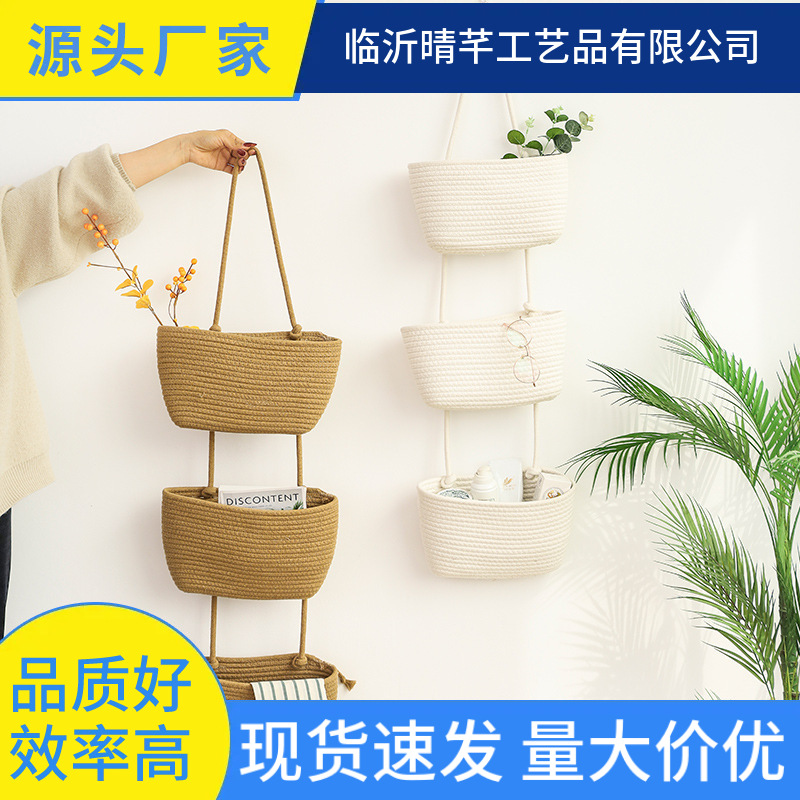 Wall Hanging Basket Storage Sorting Sundries Cotton Line Hanging Basket Decoration Wall Storage Basket Three-Layer Home Hanging