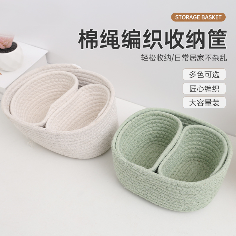 Lid Storage Basket Cute Storage Basket Cotton Rope Storage Basket Cotton Line Desktop Cosmetic Toy Sundries Storage Basket