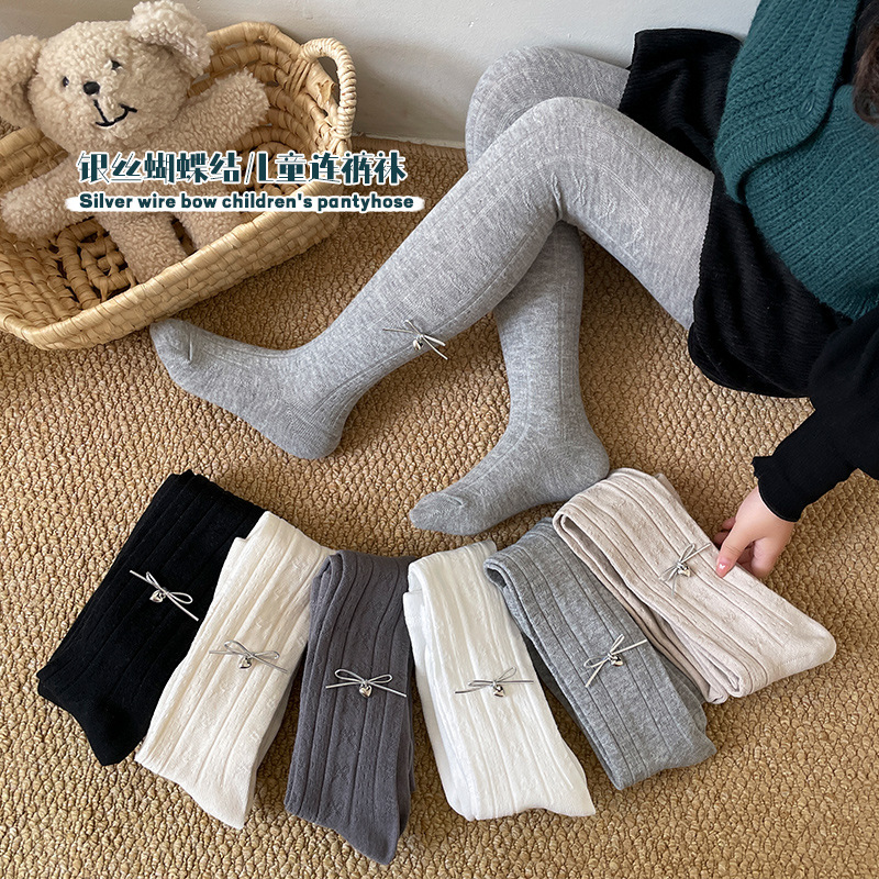 New Children's Pantyhose Anti-Pilling Spring and Autumn Wide Thick Silver Bow Class A Boneless Girls' Leggings