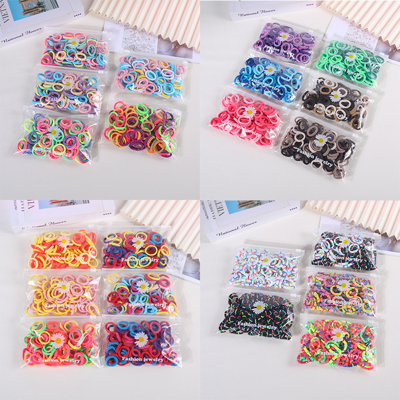 100 Daisy Bags Children's Colorful Rubber Tendons for Little Girls High Elastic Hair-free Towel Ring Hair Rope Headwear