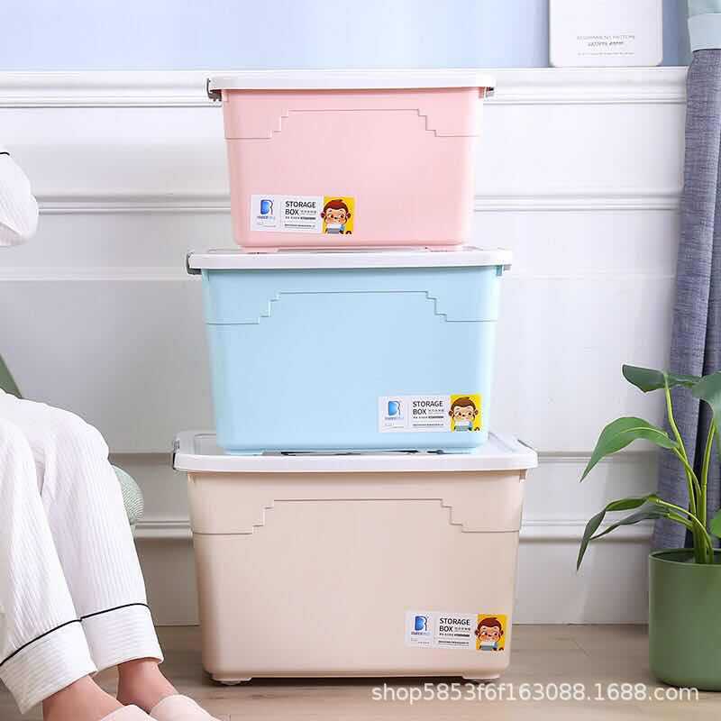 Source factory wholesale and retail plastic storage box finishing box with wheels large thick striped storage clothing quilt