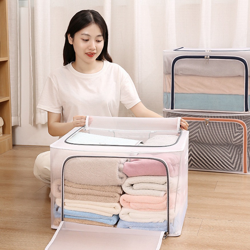 Clothes Storage Box Household Wardrobe Clothes Layered Storage Box for Quilt Folding Transparent Storage Basket Artifact