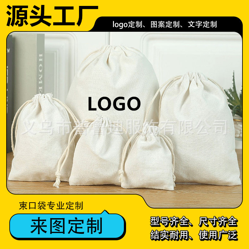 Cotton linen drawstring drawstring bag custom printed LOGO jewelry drawstring gift packaging bag dustproof storage bag