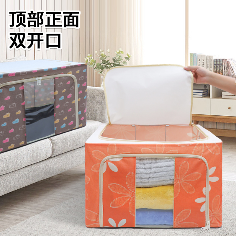 Folding Printed Oxford Fabric Storage Box Large Capacity Household Clothing Quilt Finishing Folding Steel Frame Box Wholesale