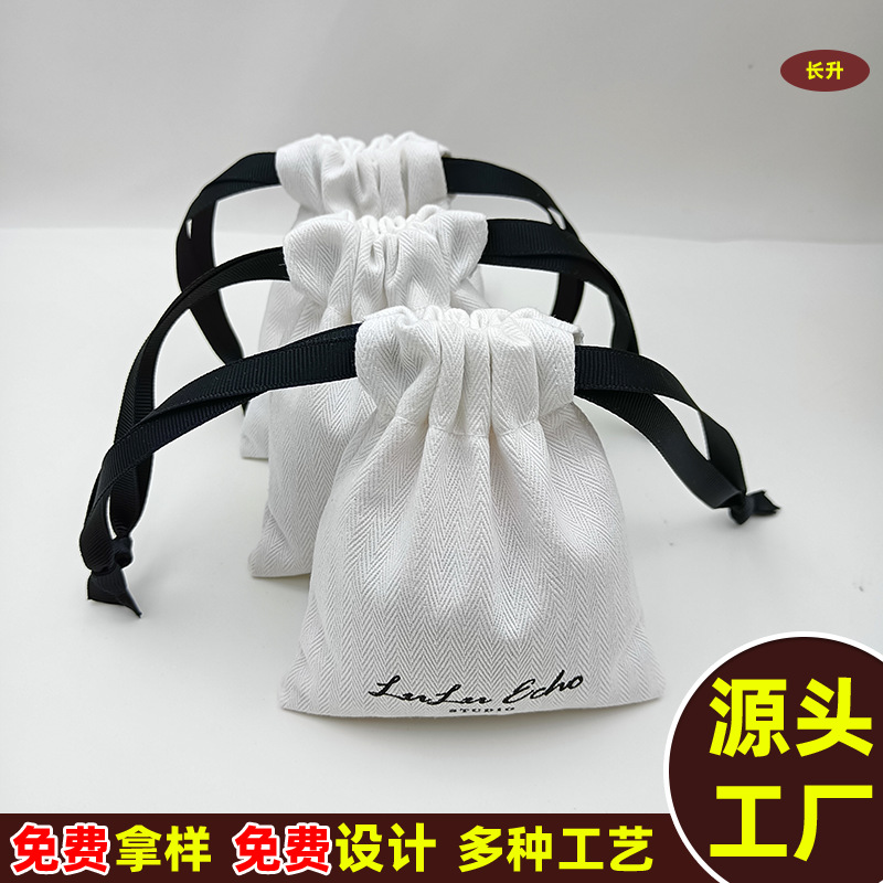 Cotton Drawstring Pocket Twill Dustproof Jewelry Storage Bag Canvas Drawstring Bag Makeup Beauty Storage Bag Printed Logo