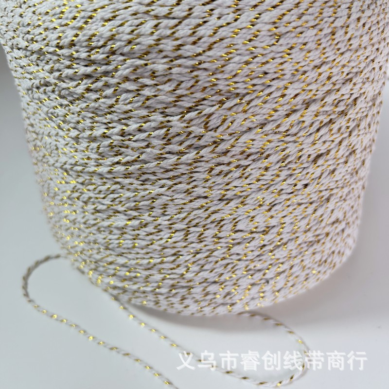 2mm Bleached Solid Round Three-Strand Cotton Rope with Gold Thread Tag Rope DIY Handmade Accessories Decorative Rope 100.1m Pieces