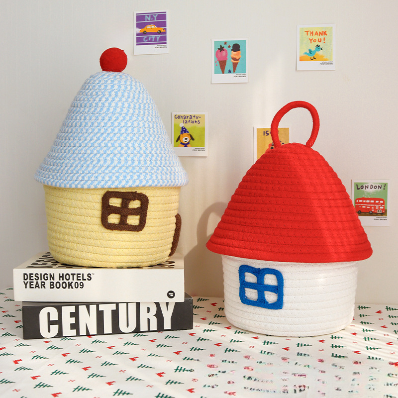 Cotton Weaving Storage Basket with Cover Small House Home Creative Living Room Snacks Entrance Key Sundries Storage