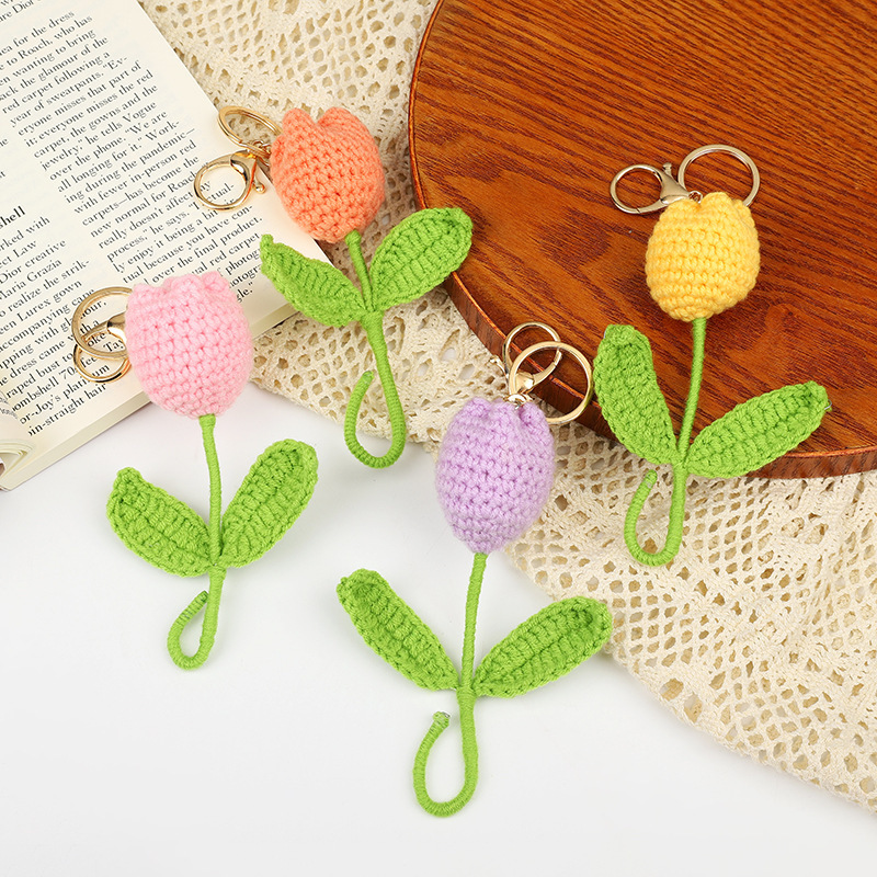 Creative cute flower keychain hand-woven cotton thread tulip flower keychain jewelry bag pendant finished product