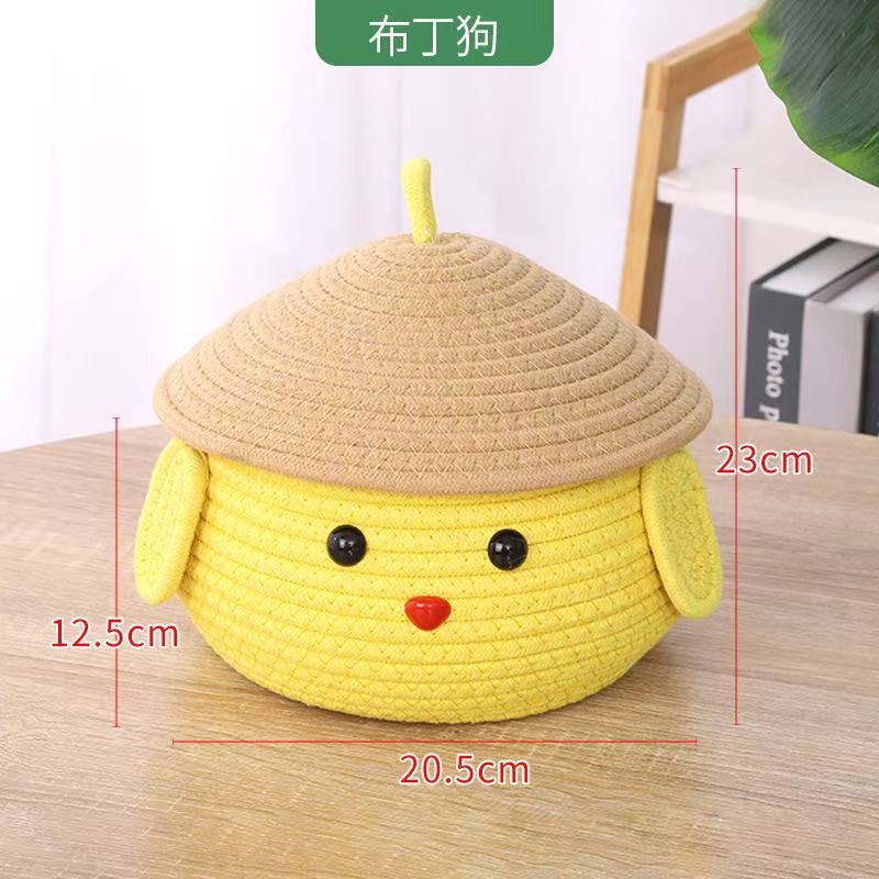Cartoon Woven Cotton Thread Storage Box Cute Snack Sundries Entrance Storage Basket with Lid