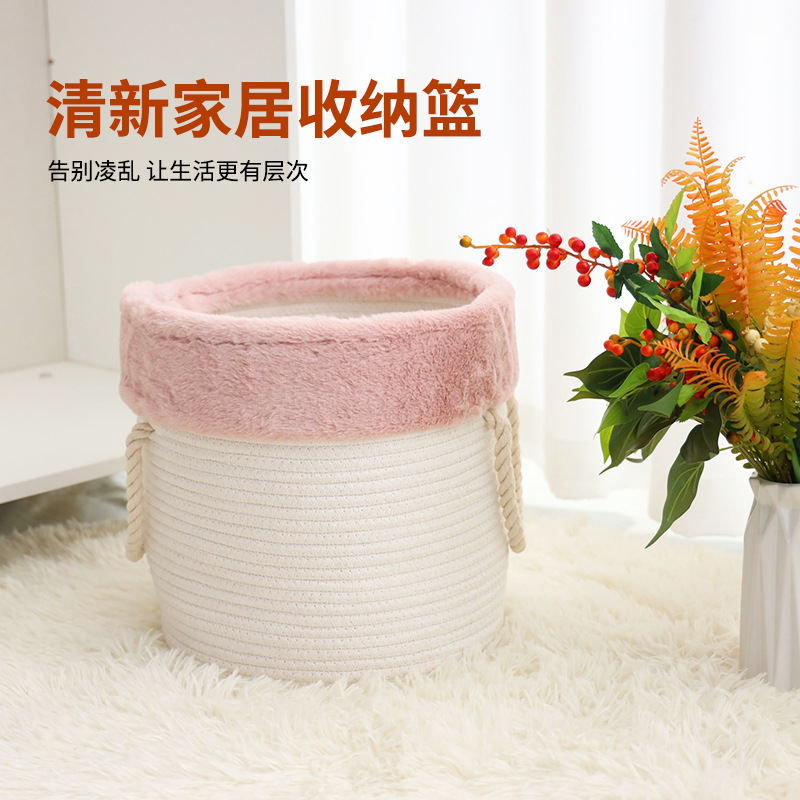 Nordic ins Cotton Storage Basket Pink Velvet Color-blocking Home Desktop Accessories Sundries Cotton Rope Woven Finishing Basket