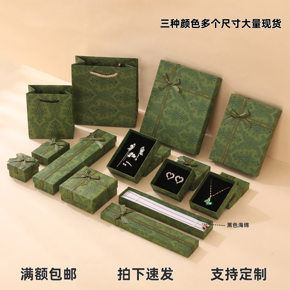 in stock wholesale jewelry box green heaven and earth cover necklace box texture gift bracelet box earring box jewelry packaging
