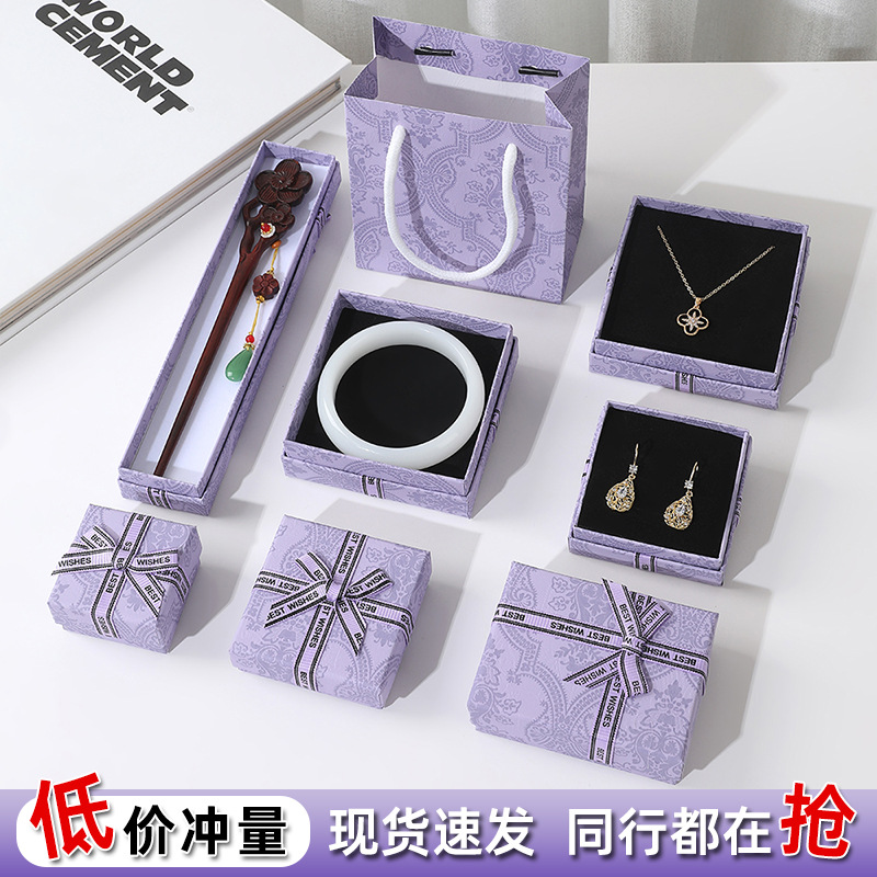 Purple Small Fresh Jewelry Box Heaven and Earth Cover Classical Printed Ring Necklace Bracelet Jewelry Holiday Jewelry Packaging Box