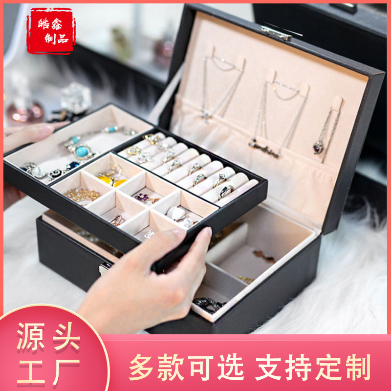 Double Layer Jewelry Box Household Large Capacity Jewelry Storage Box Portable Earrings Jewelry Box Jewelry Box Wholesale