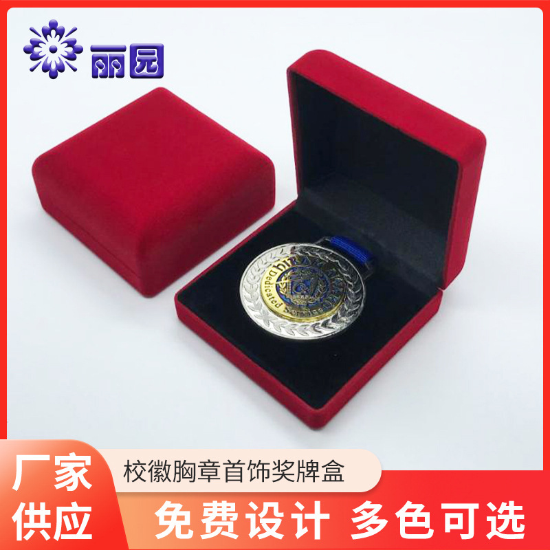 Factory supply School badge Badge medal packaging gift jewelry box flocking Badge medal box commemorative coin gift box