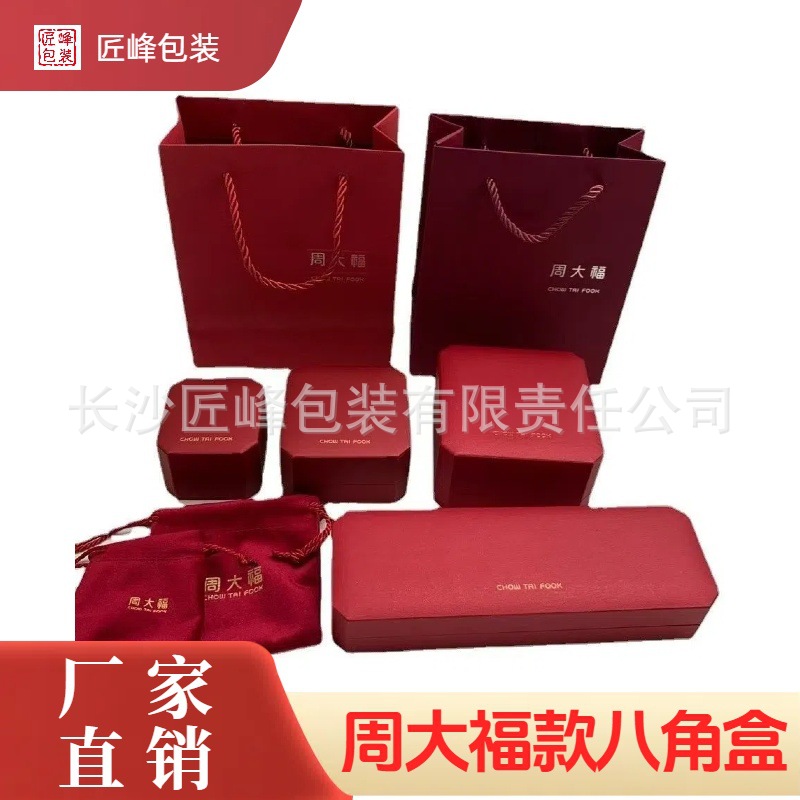 Chow Tai Fook Same Octagonal Jewelry Box Red Leather-filled Paper Jewelry Gift Packaging Box Can Change Logo Ring Box