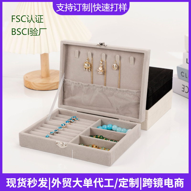 Qingyu Packaging Flannelette No Window Jewelry Box Single Layer Multifunctional Storage Ring Necklace Lipstick Portable Sortable Box