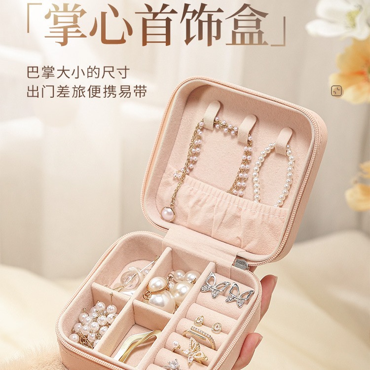 Cross-Border Direct Supply Pu Zipper Portable Jewelry Box High-End Travel Ring Earrings Small Jewelry Storage Box Wholesale