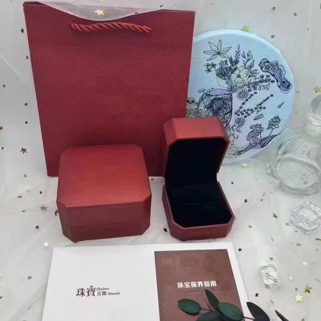 Red Octagonal Jewelry Pair Ring Pendant Necklace Box White Bow Gift Box Jewelry Packaging Box Cross Border Box