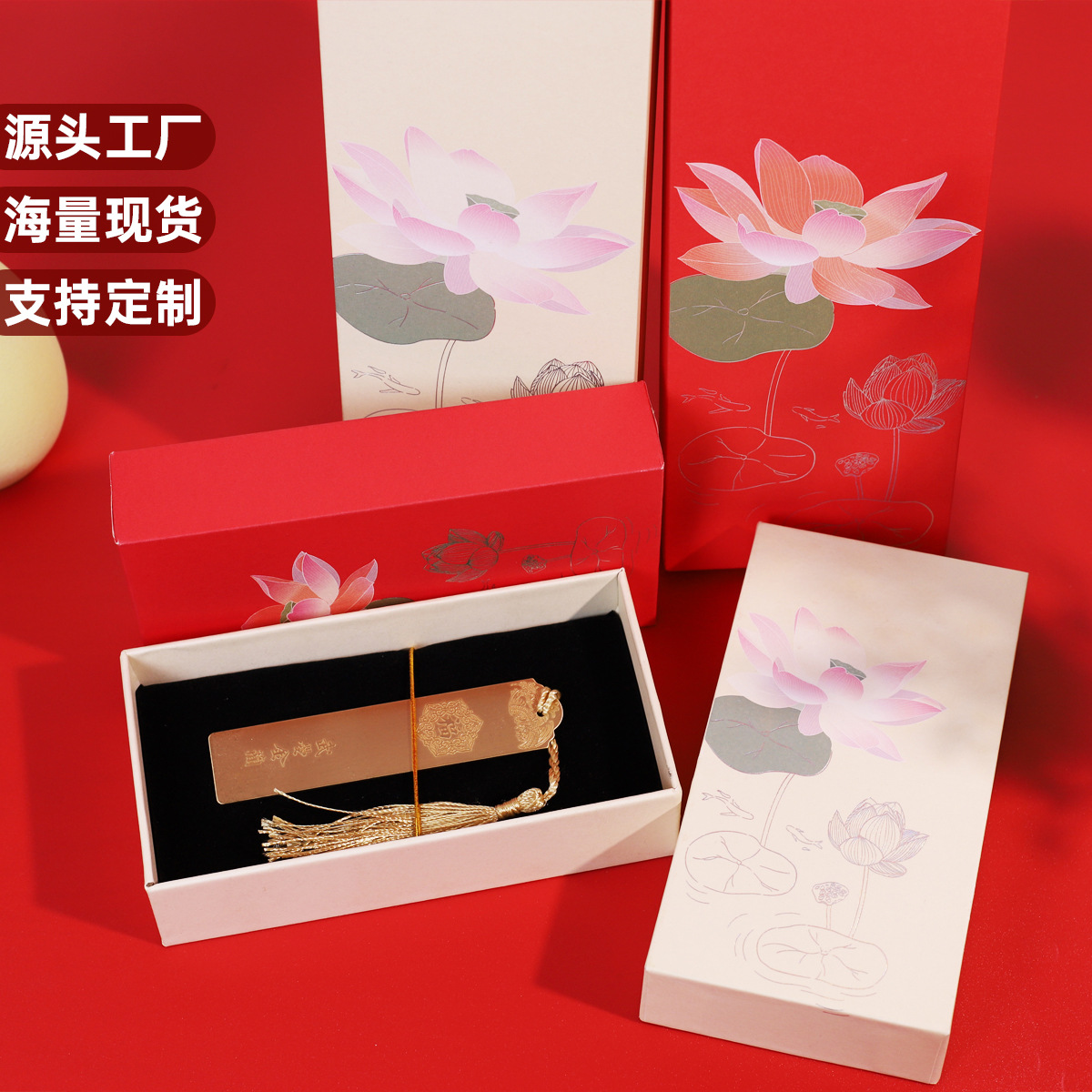 in stock antique paper lotus comb box jewelry packaging box thickened vintage necklace jewelry box pendant tassel box
