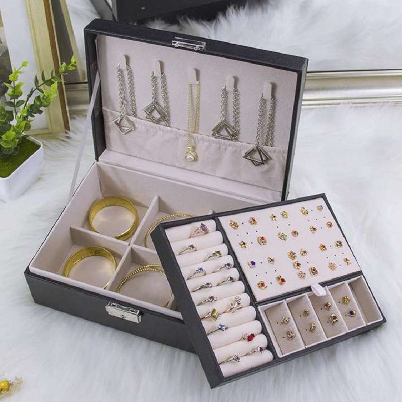 Large Capacity Double-Layer pu Leather Jewelry Storage Box with Lock Earrings Earrings Necklace Storage Box Bracelet Box