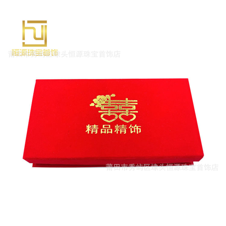 Wedding jewelry box double bracelet box set box happy word red bottom buckle edge packaging box earring flannel discount