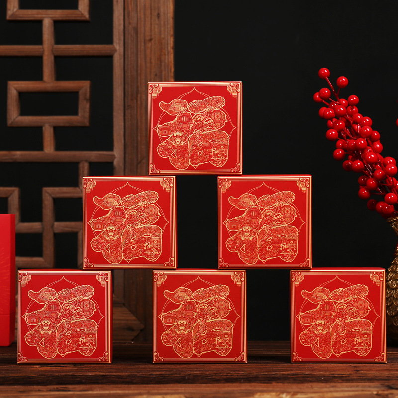 Original Chinese Style Hand Beaded Silver Bracelet Jewelry Packaging Box Festive Necklace Ring Red Cinnabar Gift Box in stock