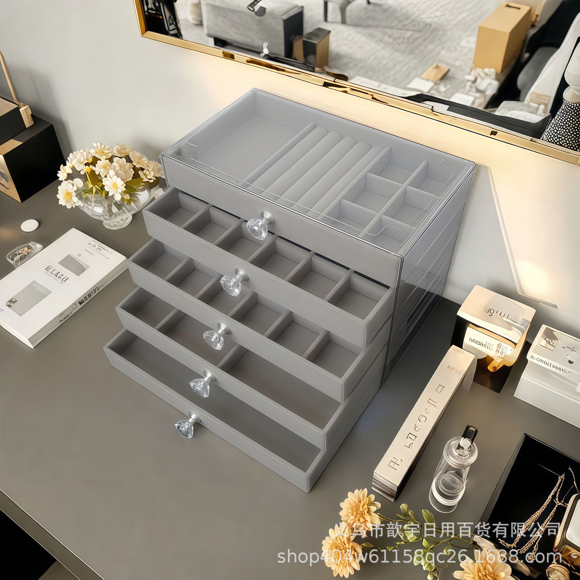 New high-end jewelry box with buckle necklace earrings jewelry jewelry box large capacity drawer storage box wholesale