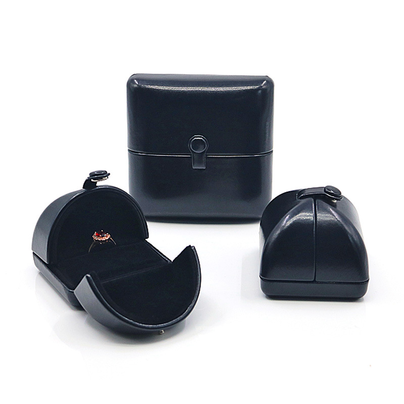 Double-Open Black Oily Leather Jewelry Box Ring Box Pair Ring Box Earring Earring Box Pendant Necklace Box Bracelet Box