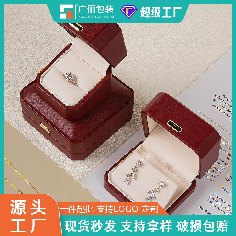 High-grade PU leather octagonal surface jewelry box gold label gold buckle ring pendant box jewelry packaging box storage box