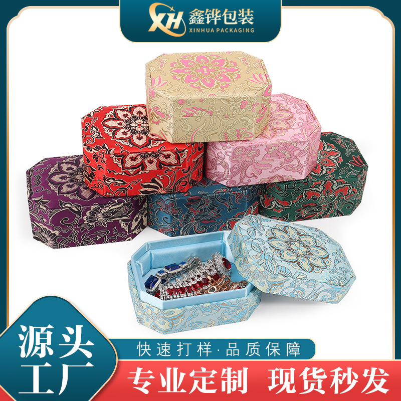 Jewelry Antique Brocade Octagonal Cover Chinese Bracelet Cultural Gift Box Antique Storage Packaging Box
