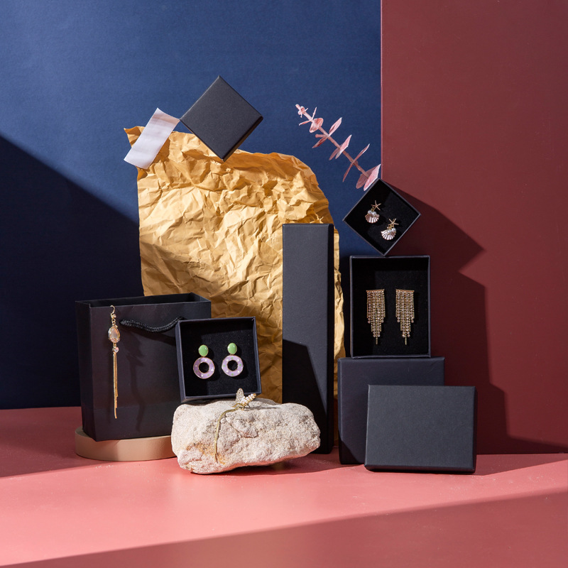 Factory sales jewelry packaging box black kraft paper ring earrings bracelet necklace jewelry box spot wholesale