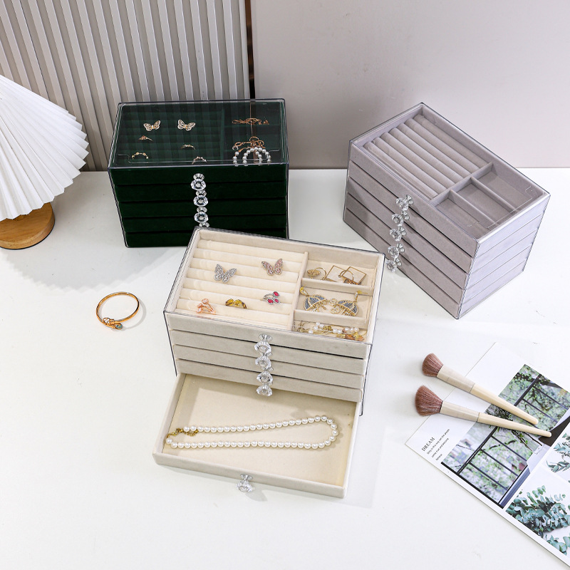 Jewelry Storage Box New Model Drawer-Type Necklace and Earring Multi-Layer Large Capacity Earring and Hand Jewelry Box Gift Box Five-Layer