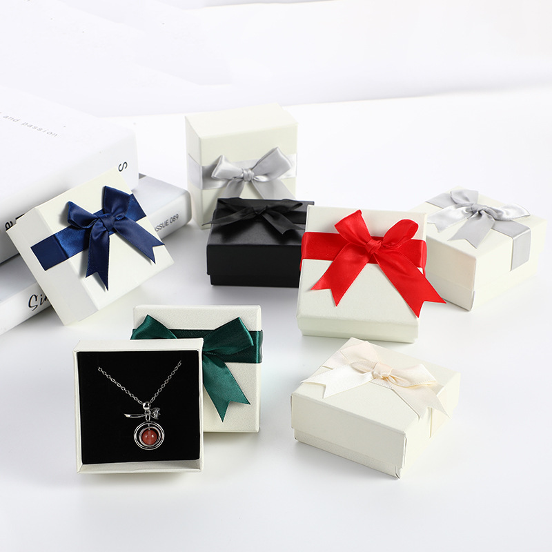 Jewelry Jewelry Box Bow Ribbon Packaging Box Ring Necklace Earrings Earrings Paper Jewelry Box Gift Box Wholesale