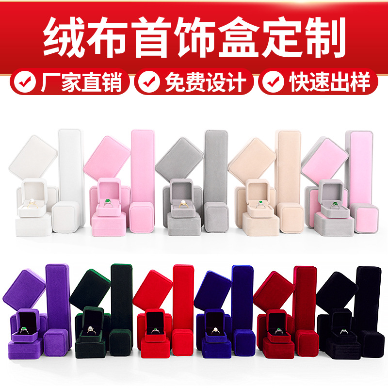 Manufacturers custom flannel jewelry box to map sample flannel bracelet long chain pendant earring ring ring box hot stamping logo