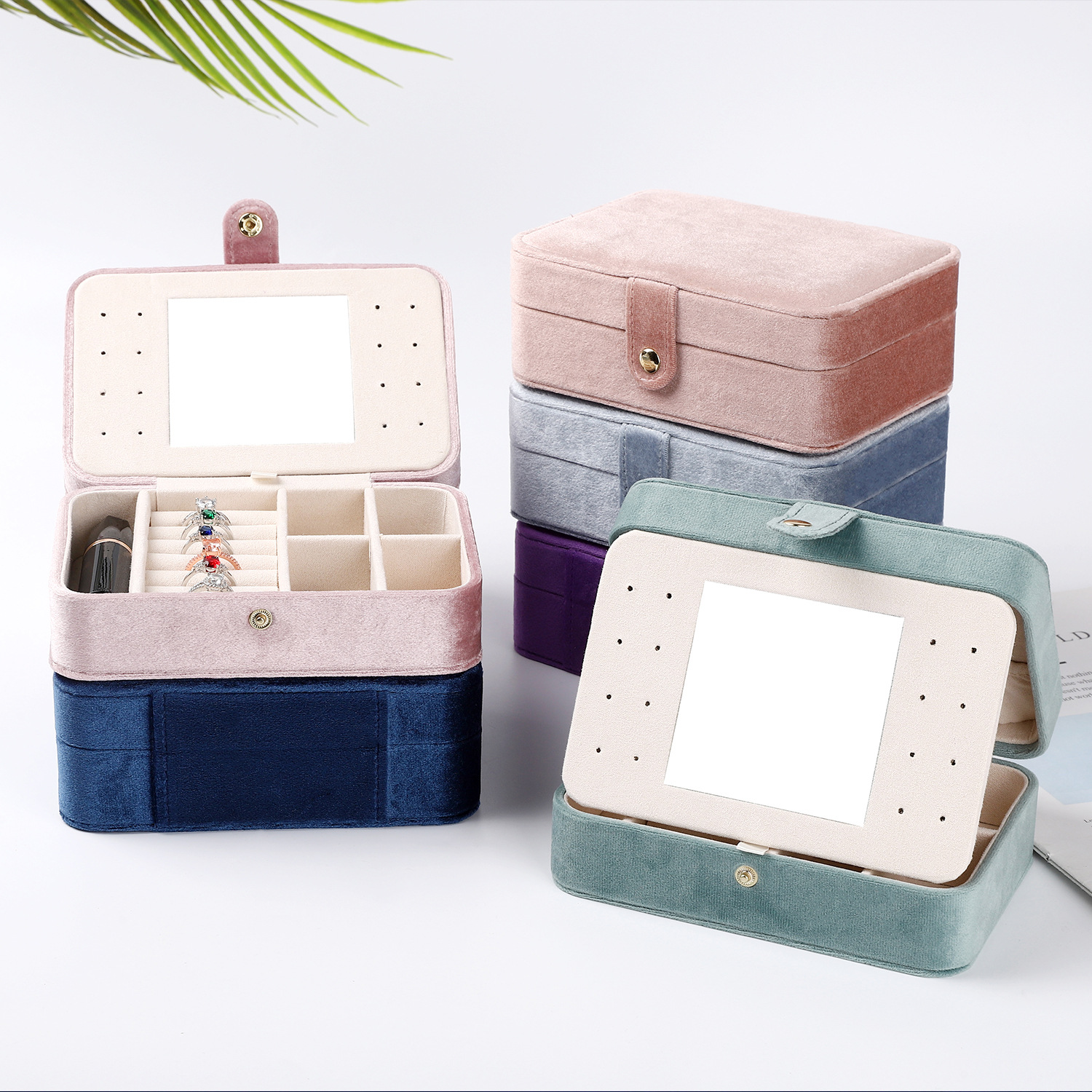 Customized Wholesale Velvet Jewelry Storage Box Earrings and Ear Accessories Glass Storage Box with Mirror Jewelry Packaging Box