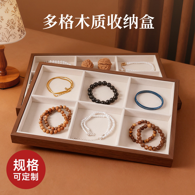 Walnut Wood Grain Jewelry Box Retro Wooden Jewelry Tray Jewelry Tray Ring Storage Tray Props Display Tray