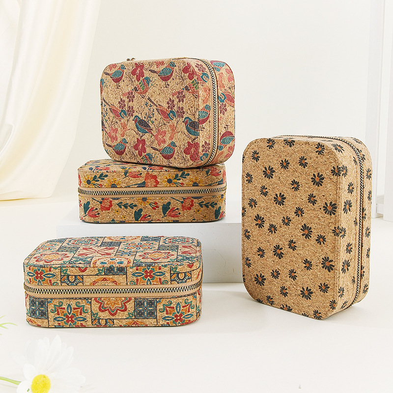 High-End Large European Cork Jewelry Box with Makeup Mirror, a Must-Have for Business Trips