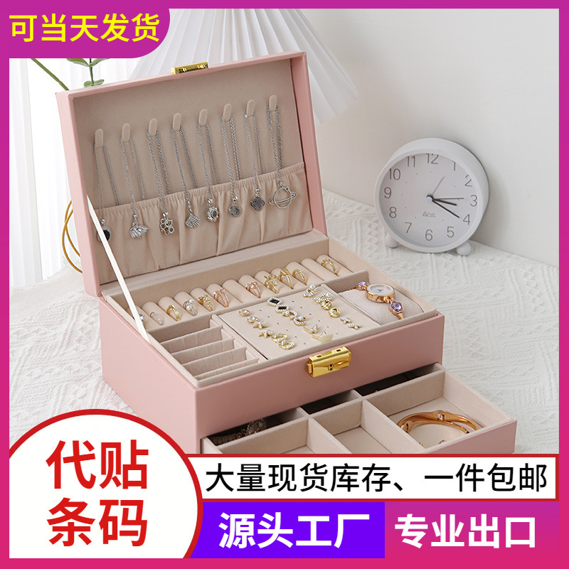 Double-layer Drawer Type Leather Jewelry Box High-grade Earrings Jewelry Box Earrings Earrings with Lock Jewelry Storage Box