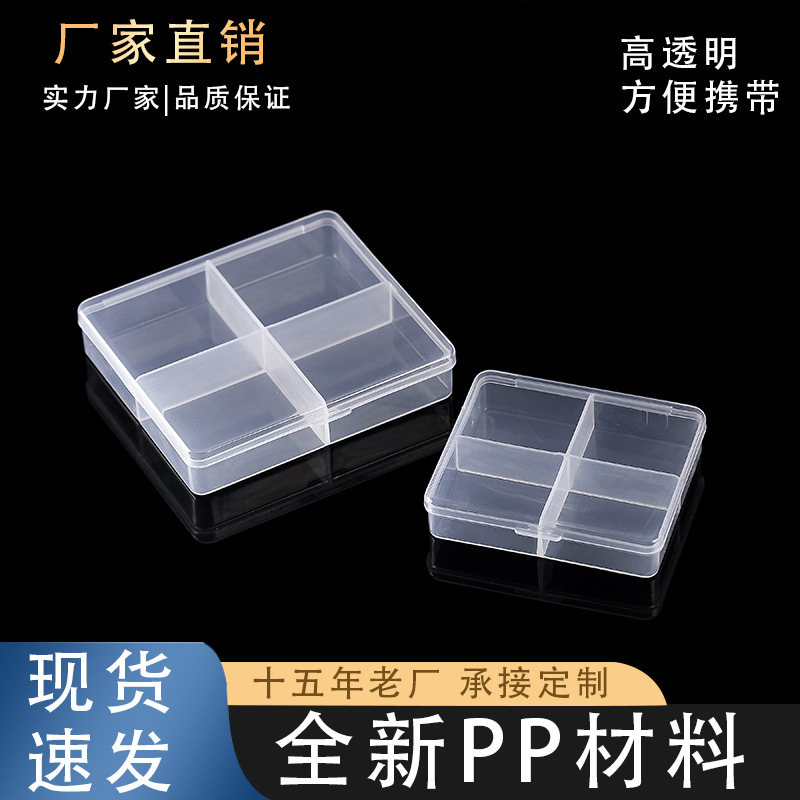 4 grid cross-border flat box transparent plastic pp jewelry fishing gear parts paper clip box accessories storage finishing box