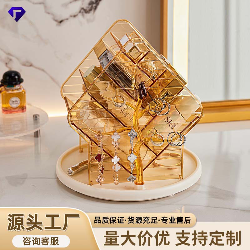 Diamond Pattern Cosmetic Storage Box Desktop 360 Rotating Acrylic Box Dressing Table Lipstick Skin Care Storage
