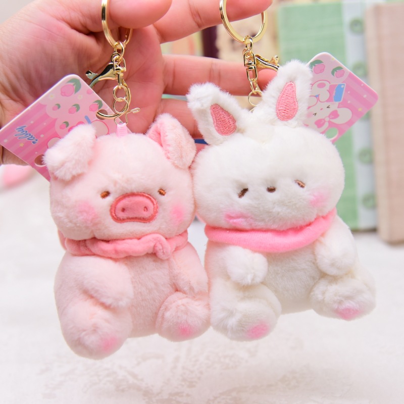 Cute pink pig doll with bow plush toy bunny pendant kitten keychain schoolbag ornaments