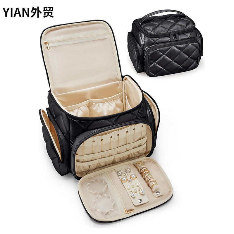 Amazon New Travel Cosmetic Bag with Jewelry Organizer Toiletry Bag with Multi-Compartment Cosmetic Bag Jewelry Bag
