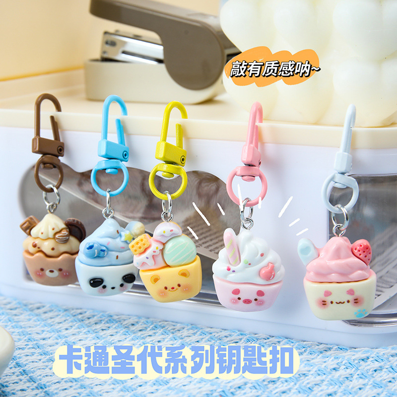 Cream Sundae Key Chain Pendant Accessories Girl Heart School Bag Pencil Case Pendant Jewelry Best Friend Small Gift Key Chain