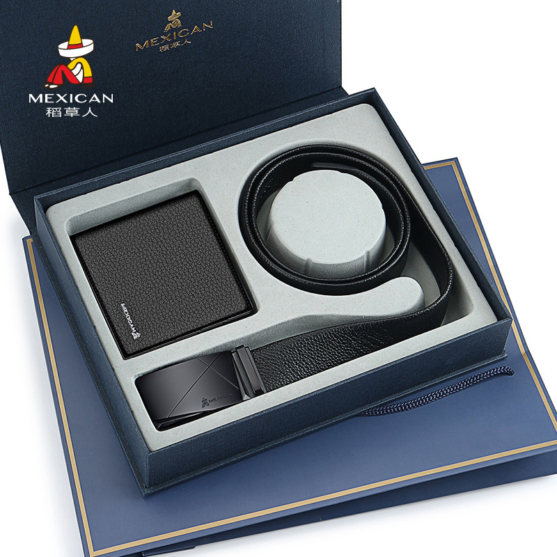 Scarecrow Official Website Genuine Men's Wallet Belt Gift Set Cowhide Belt Genuine Leather Short Wallet for Dad