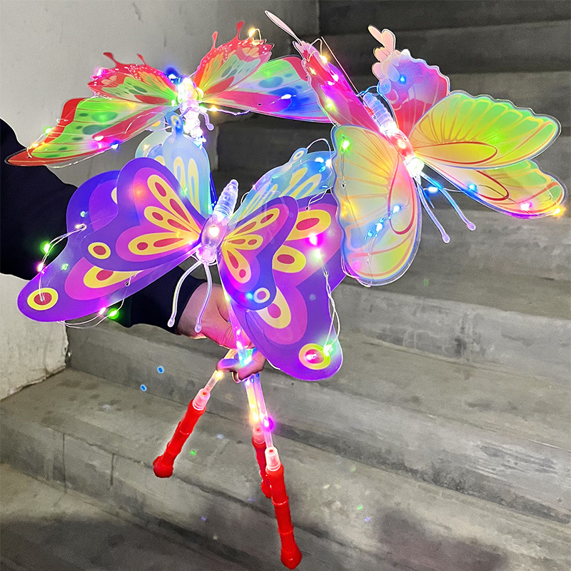 New colorful luminous simulation butterfly hand-held swing butterfly park furnishings night market stall flash toys wholesale