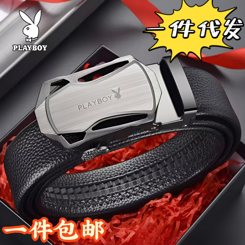New Belt Men's Automatic Buckle Belt Pure Cowhide Fashion All-match Trendy Middle-aged Casual Pants Belt Gift Box