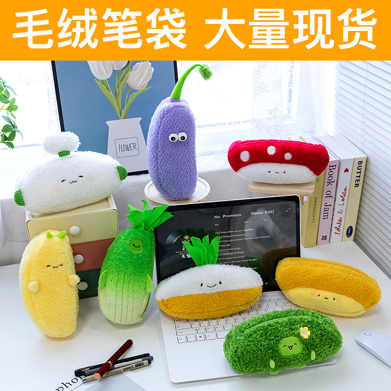Creative Plush Pencil Case, Vegetable and Fruit Simulation Pencil Case, Plush Toy Doll, Girl Doll, Office Ornaments